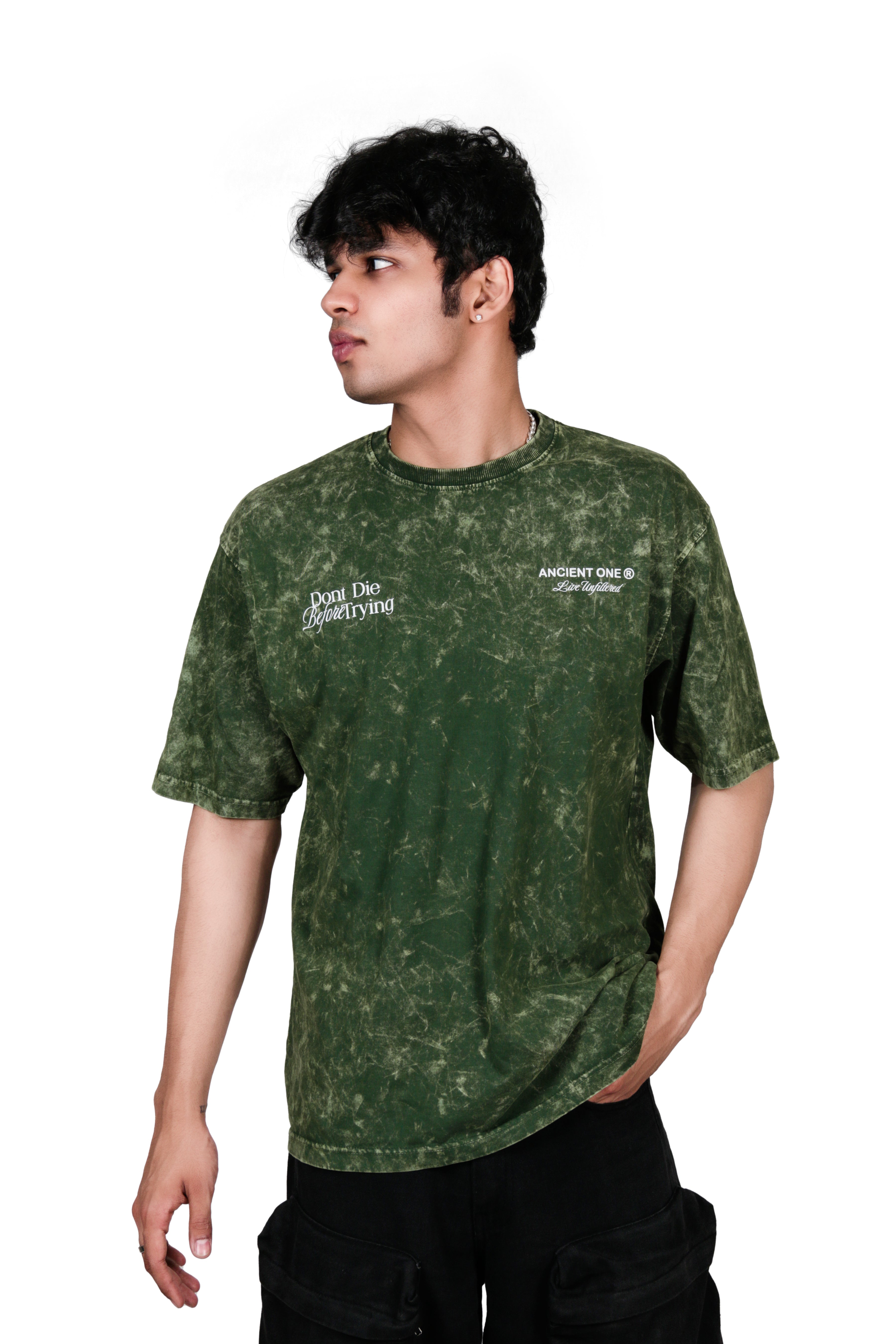 Ancient One Unisex Acid Wash Oversized Tee Bottle Green